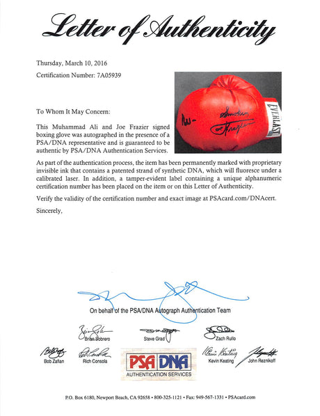 - Ships FreeMuhammad Ali & Joe Frazier Signed Red Everlast Boxing Glove PSA/DNA #7A05939 Very low stock (1 unit)$3,569Unit price /Unavailable