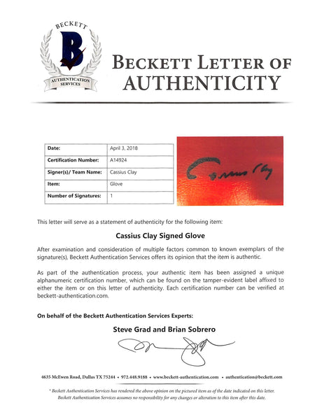 - Ships FreeMuhammad Ali Cassius Clay Authentic Signed Red Everlast Boxing Glove BAS #A14924 Very low stock (1 unit)$2,979Unit price /Unavailable