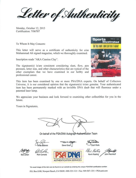 - Ships FreeMuhammad Ali Signed 1964 Sports Illustrated Magazine Cover PSA/DNA #Y06707 Very low stock (1 unit)$1,429Unit price /Unavailable