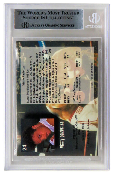 - Vinny 'Paz' Pazienza Signed 1996 Ringside Boxing Card #24 - (Beckett Slabbed) Low stock (3 units)$89Unit price /Unavailable