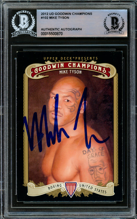- Mike Tyson Autographed 2012 Upper Deck Goodwin Champions Card #102 (Smudged) Beckett BAS #15500870 Very low stock (1 unit)$99Unit price /Unavailable