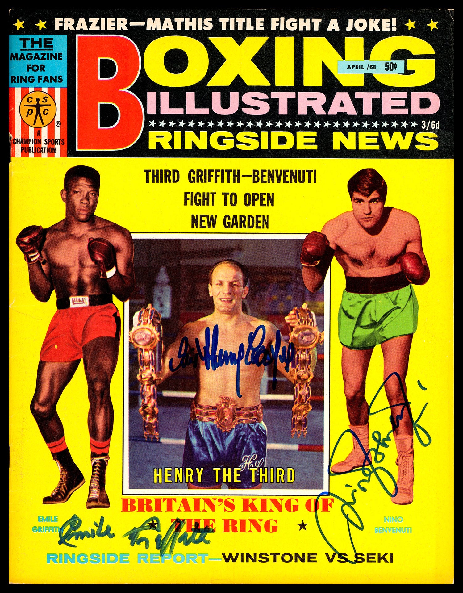 Henry Cooper, Emile Griffith & Nino Benvenuti Autographed Boxing Illustrated Magazine Beckett BAS #BN16048
