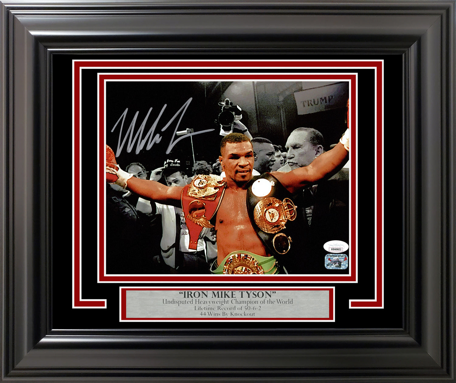Mike Tyson Autographed Framed 8x10 Photo Belts JSA Stock #254289