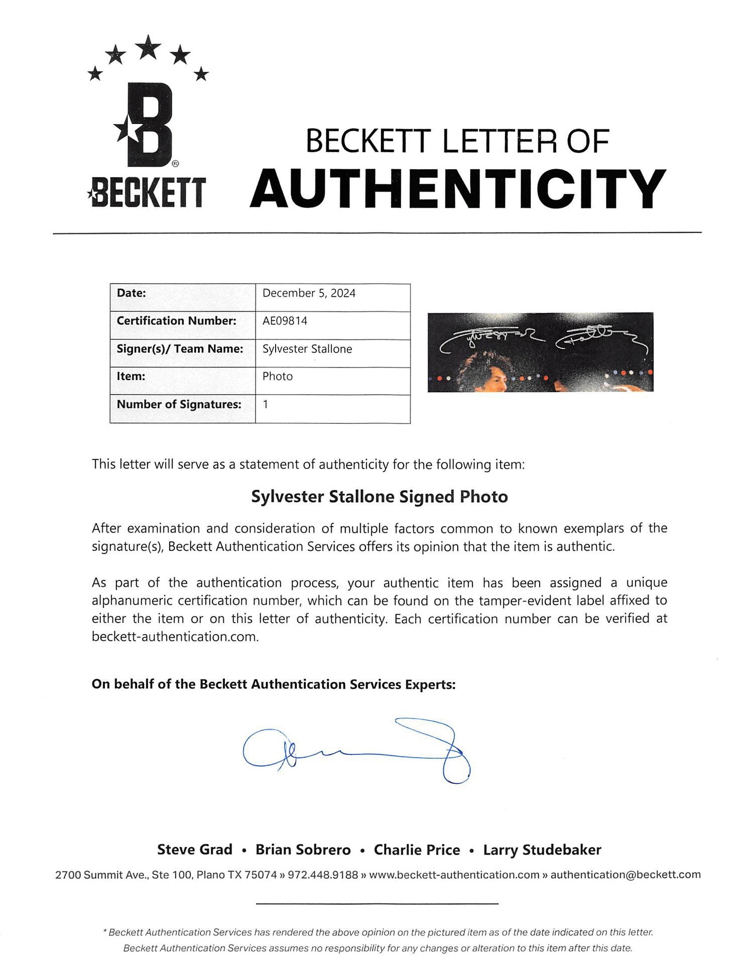 Celebrate the grit and determination of Rocky Balboa with this officially authenticated, signed collectible. Secure yours today and own a rare tribute to one of the greatest sports films of all time!