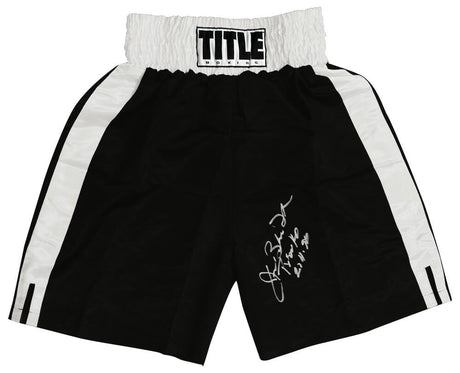 Very low stock (1 unit)$579Unit price /Unavailable James Buster Douglas Signed Title Black & White Trim Boxing Trunks w/Tyson KO 2-11-90