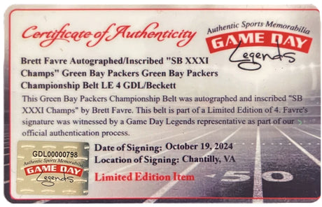 Brett Favre Autographed Green Bay Packers Green Bay Packers Championship Belt Beckett Witnessed