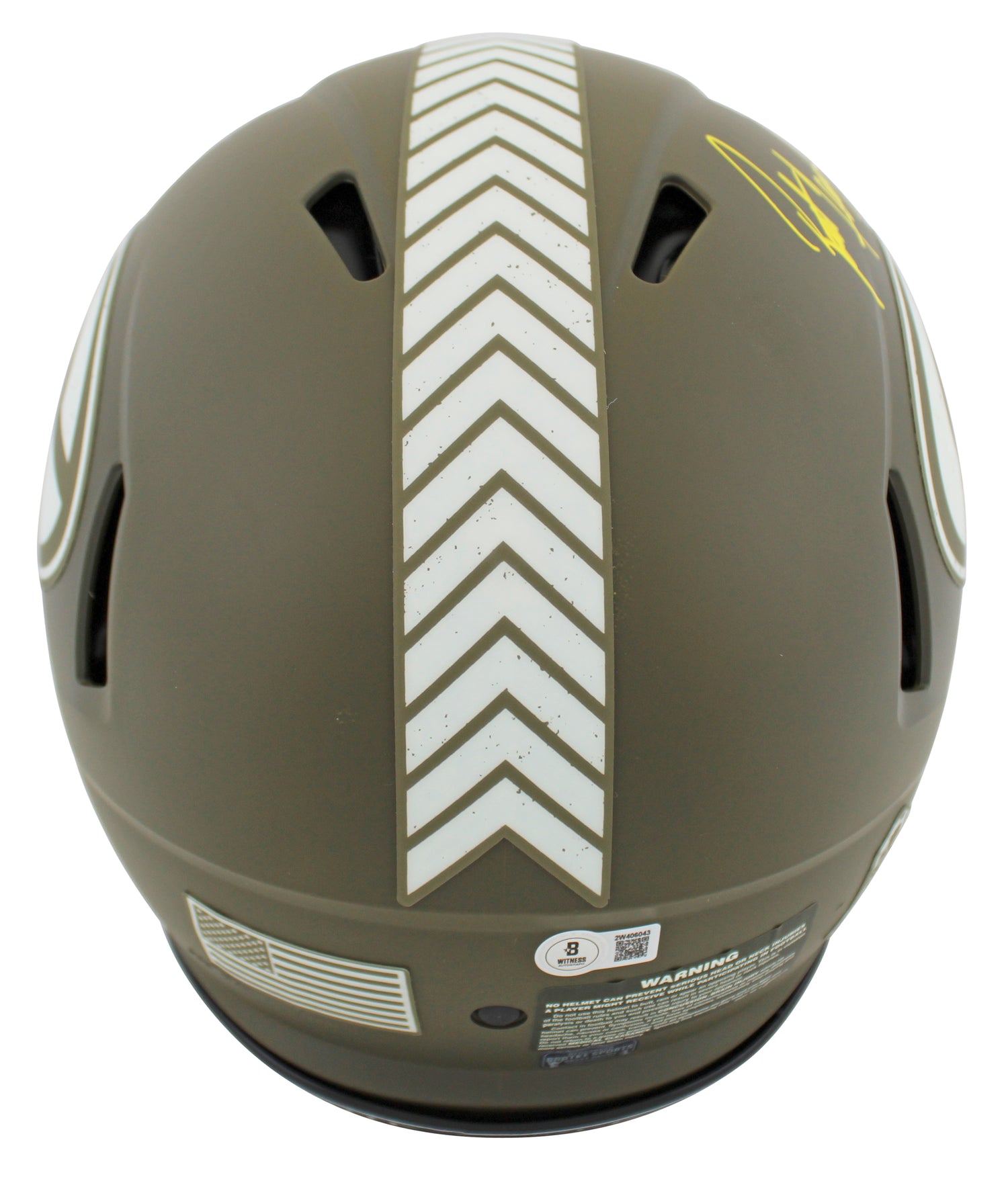 Own a piece of Green Bay Packers history with this Brett Favre Autographed Alternate Salute to Service Riddell Authentic Full-Size Speed Proline Helmet. A must-have for serious collectors and die-hard fans, this helmet honors one of the NFL’s greatest quarterbacks while also supporting the league’s commitment to military appreciation. This item has been personally signed by Brett Favre, ensuring its authenticity and value. To provide collectors with confidence, this helmet includes a Beckett Authentication Services (BAS) hologram with a scannable QR code for verification. Please note that Beckett no longer provides serial-numbered COA cards—the affixed BAS authentication sticker fully certifies this item's legitimacy. Key Features: