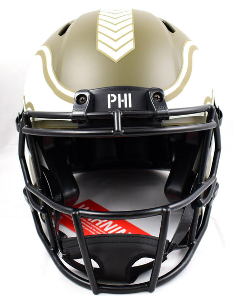 Brian Dawkins Autographed Eagles Salute to Service Speed Mini Helmet- Beckett