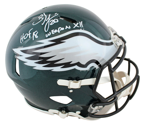 Eagles Brian Dawkins "HOF 18, Weapon X!" Signed F/S Speed Proline Helmet JSA