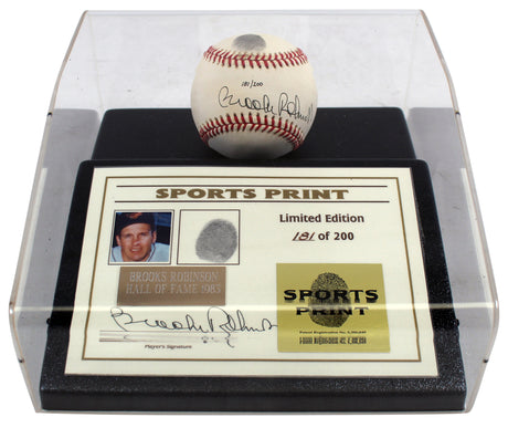 Orioles Brooks Robinson Signed Thumbprint Baseball LE #'d/200 w Display Case BAS