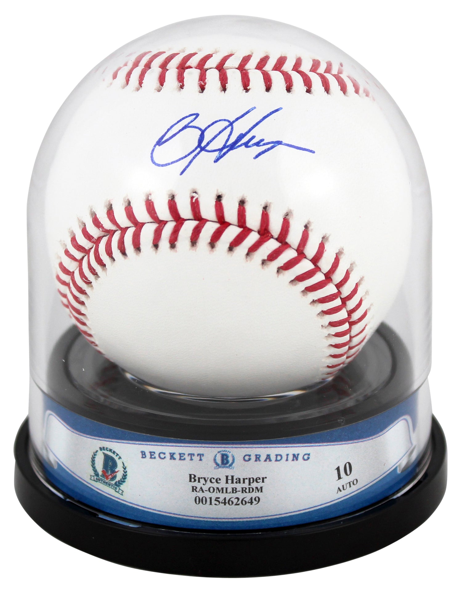 Phillies Bryce Harper Authentic Signed Oml Baseball Auto Graded Gem Mint 10! BAS