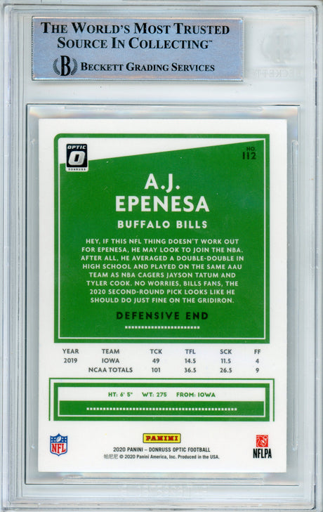 Very low stock (1 unit)$159Unit price /Unavailable2020 Donruss Optic #112 AJ Epenesa RC Buffalo Bills BGS Autograph 10
