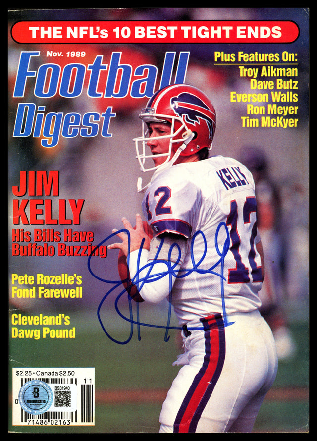 Jim Kelly Autographed 5.5x7.5 Football Digest Magazine Buffalo Bills Beckett BAS QR #BS31940