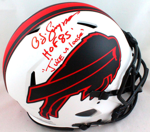 OJ Simpson Autographed Buffalo Bills Lunar Authentic Helmet w/2 insc. - JSA W *R is backordered and will ship as soon as it is back in stock.