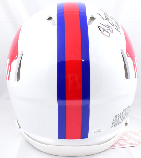 O.J. Simpson Autographed Bills F/S Authentic Helmet 5 inscriptions - JSA W