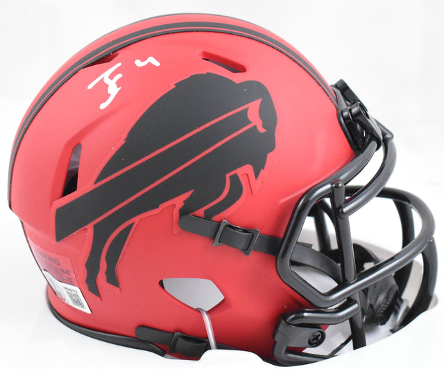 Own a piece of Buffalo Bills history with this James Cook autographed Riddell Football Rave Speed Mini Helmet. Whether you’re a die-hard Bills fan or a memorabilia collector, this signed mini helmet is a must-have addition to your sports collection. As a rising star in the NFL, James Cook is making waves as a dynamic running back for the Buffalo Bills, making his autograph an increasingly valuable keepsake for fans and collectors alike.