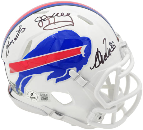 Jim Kelly Thomas Reed Signed Bills White FS Replica Speed Helmet Bills Mafia BAS