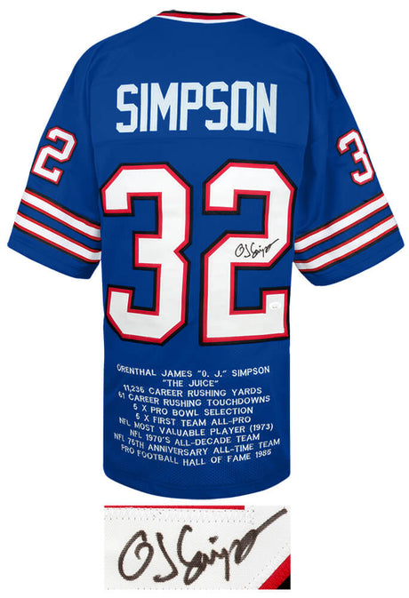 O.J. Simpson Signed Blue Throwback Embroidered Stat Custom Football Jersey - (JSA COA)