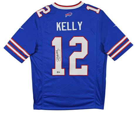 Buffalo Bills Jim Kelly Autographed Blue Jersey Beckett BAS Witness Stock #230185