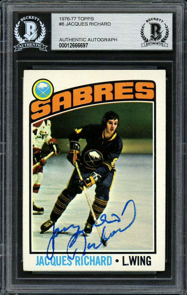 Jacques Richard Autographed 1976-77 Topps Card #8 Buffalo Sabres Beckett BAS #12666697