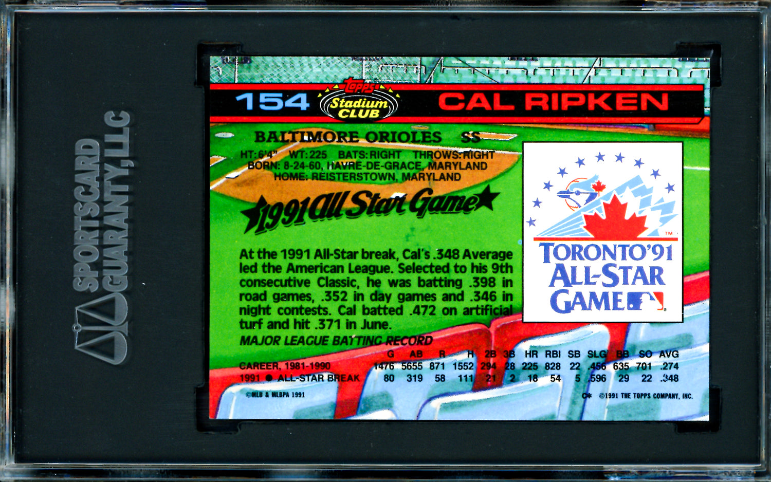 Cal Ripken Jr. Autographed 1992 Stadium Club Dome Card #154 Baltimore Orioles SGC 8.5 Auto Grade Gem Mint 10 SGC #8340339-133
