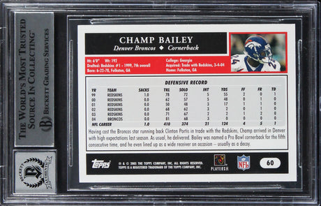 Broncos Champ Bailey Authentic Signed 2005 Topps #60 Card Auto 10! BAS Slabbed