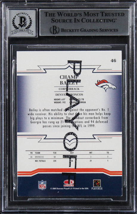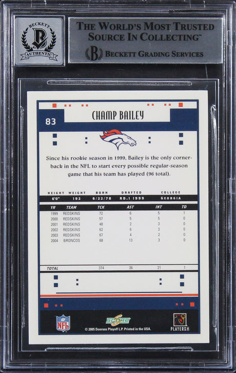 Broncos Champ Bailey Authentic Signed 2005 Score #83 Card Auto 10! BAS Slabbed