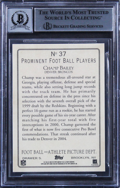Broncos Champ Bailey Signed 2005 Topps Turkey Red #37A Card Auto 10! BAS Slabbed