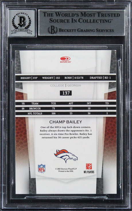 Broncos Champ Bailey Signed 2007 Leaf Certified Mat #137 Card Auto 10! BAS Slab