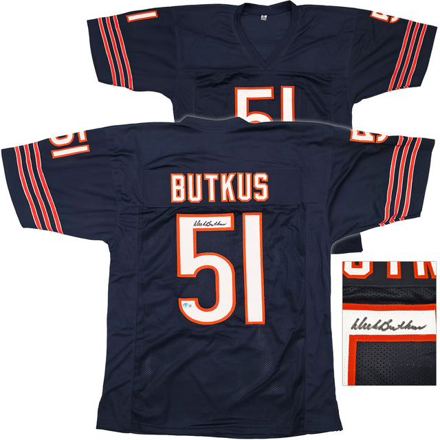 Chicago Bears Dick Butkus Autographed Blue Jersey Beckett BAS Witness Stock #253323