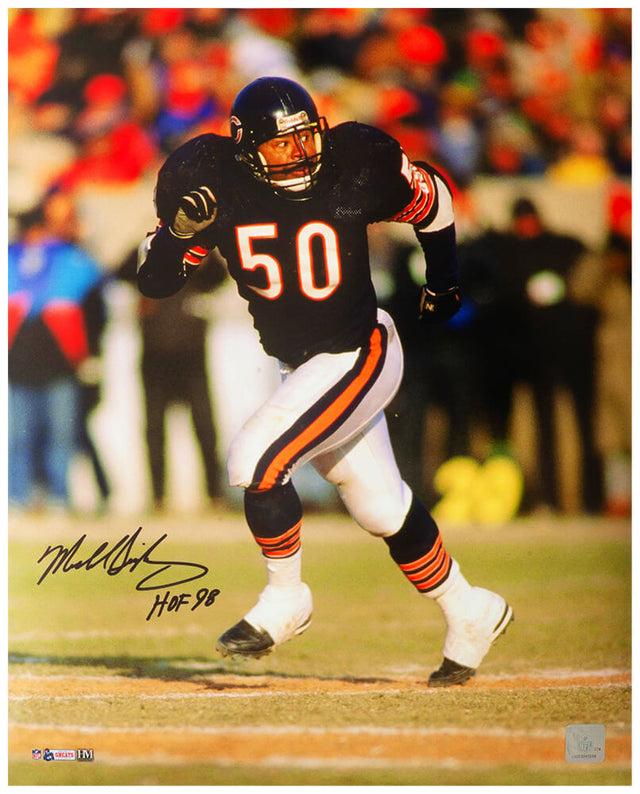 Celebrate the legacy of Chicago Bears legend Mike Singletary with this stunning, autographed 16x20 action photo in his classic navy jersey. Captured in the heat of the game, this iconic piece is hand-signed by the Hall of Fame linebacker and features the special 'HOF 98' inscription to honor his 1998 induction into the Pro Football Hall of Fame. A prized collectible for Bears fans and football historians alike, this photo brings the ferocity and focus of Singletary’s playing days straight to your collection.