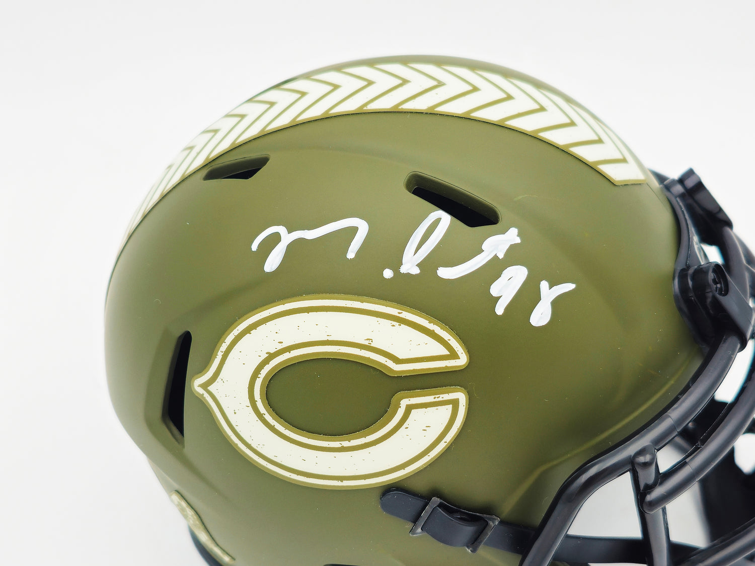 Own a piece of Chicago Bears history with this Chicago Bears Army Green Salute to Service Speed Mini Helmet, personally hand-signed by Montez Sweat. This exclusive collectible honors both the Bears and the NFL's commitment to supporting military service members.