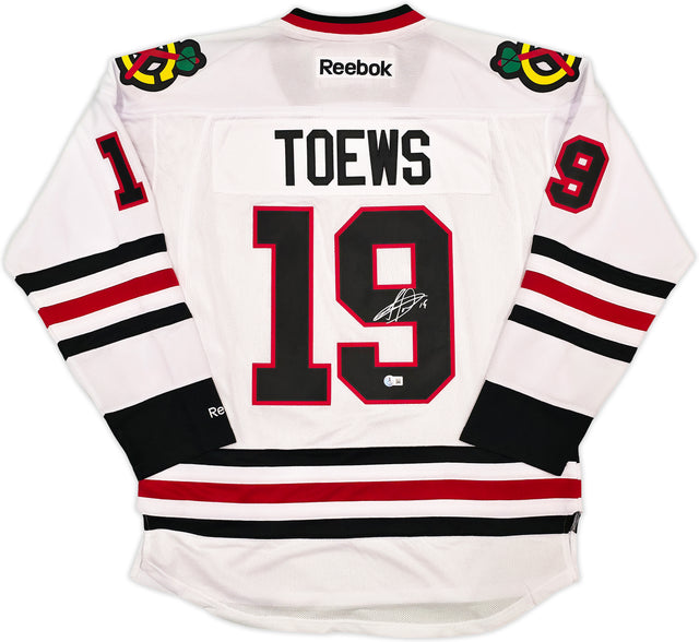 Chicago Blackhawks Jonathan Toews Autographed White Reebok Premier Jersey Size L Beckett BAS Witness Stock #250187