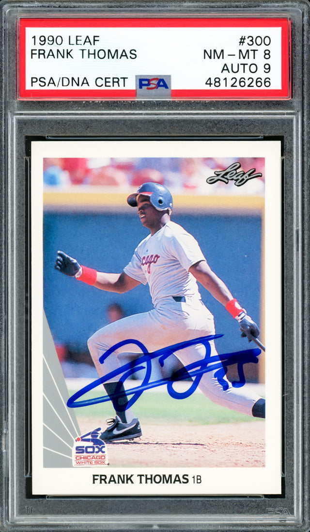Frank Thomas Autographed 1990 Leaf Rookie Card #300 Chicago White Sox PSA 8 Auto Grade Mint 9 PSA/DNA Stock #220345