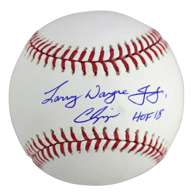 Own a piece of baseball history with this autographed Official Major League (OML) baseball, personally signed by Larry Wayne "Chipper" Jones Jr., the legendary third baseman of the Atlanta Braves. This exclusive collectible features Jones' signature along with the inscription "HOF 18," commemorating his induction into the Baseball Hall of Fame in 2018. A must-have for Braves fans and memorabilia enthusiasts alike!
