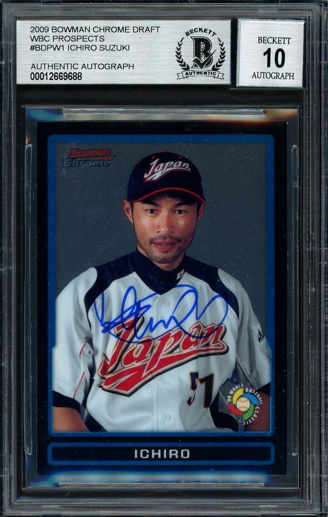Ichiro Suzuki Autographed 2009 Bowman Chrome Draft Card #BDPW1 Japan Auto Grade 10 Beckett BAS Stock #189867