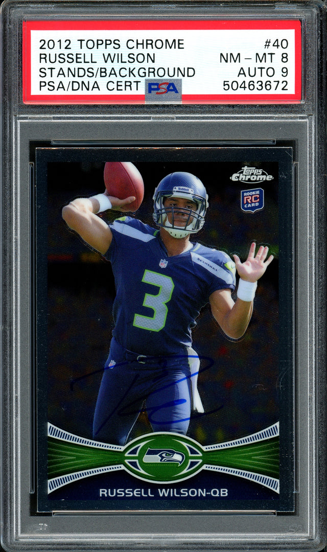 Russell Wilson Autographed 2012 Topps Chrome Rookie Card #40 Seattle Seahawks Auto Grade 9 Card Grade NM-MT 8 PSA/DNA #50463672