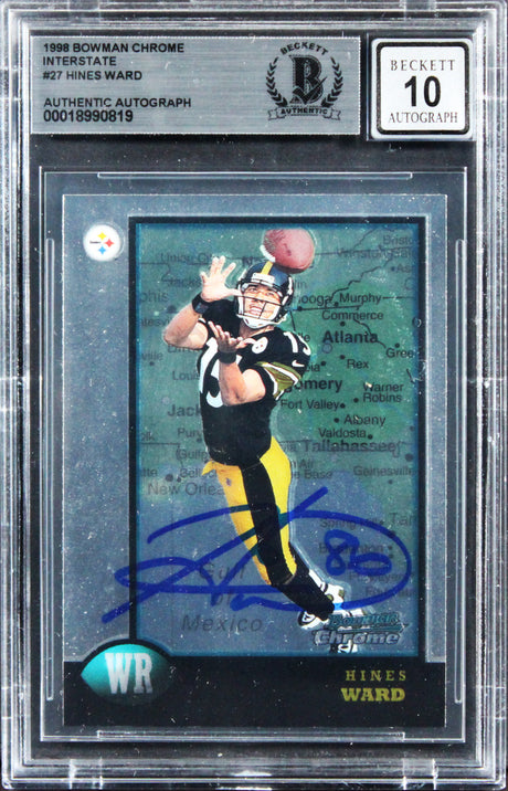 Hines Ward Signed 1998 Bowman Chrome Interstate #27 RC Card Auto 10! BAS Slab