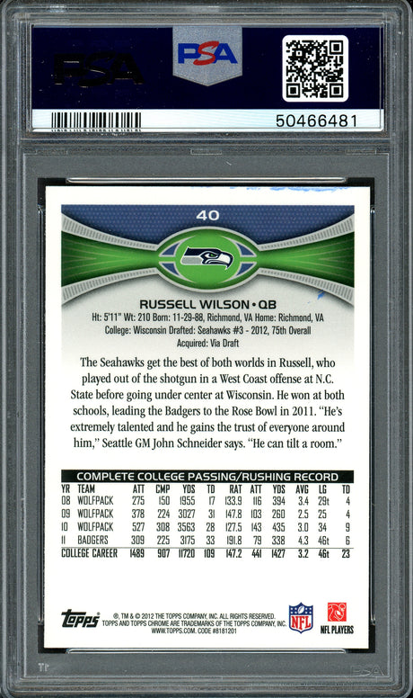 Russell Wilson Autographed 2012 Topps Chrome Rookie Card #40 Seattle Seahawks PSA/DNA #83812152