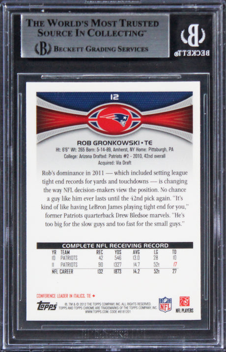 Patriots Rob Gronkowski Authentic Signed 2012 Topps Chrome #12 Card BAS Slabbed