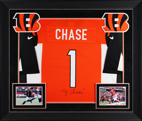 Bengals Ja'Marr Chase Signed Orange TB Nike Game Framed Jersey BAS Witnessed