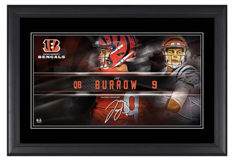 Very low stock (1 unit)$309Unit price /Unavailable Joe Burrow Cincinnati Bengals Facsimile Signature Framed 10" x 18" Player Nameplate Collage Fanatics