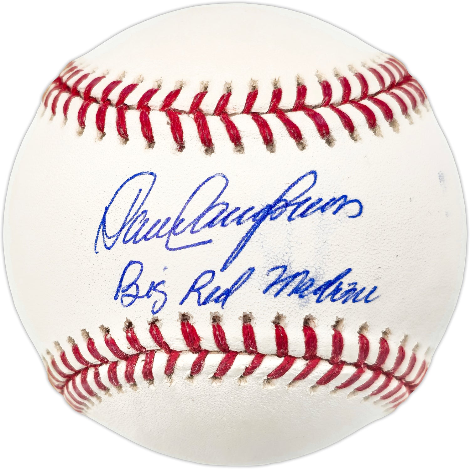 This is a must-have collectible for fans of Cincinnati Reds history and MLB enthusiasts. This Official MLB Baseball is hand signed by Dave Concepcion, legendary shortstop of the iconic Big Red Machine – the powerhouse Cincinnati Reds team that dominated baseball in the 1970s. Concepcion added the unique inscription "Big Red Machine" to celebrate his role in the Reds' dynasty, making this a truly special piece for die-hard fans and serious collectors alike. While there is a smudge in the signature as shown, this only adds to the uniqueness of this game-used-style item.