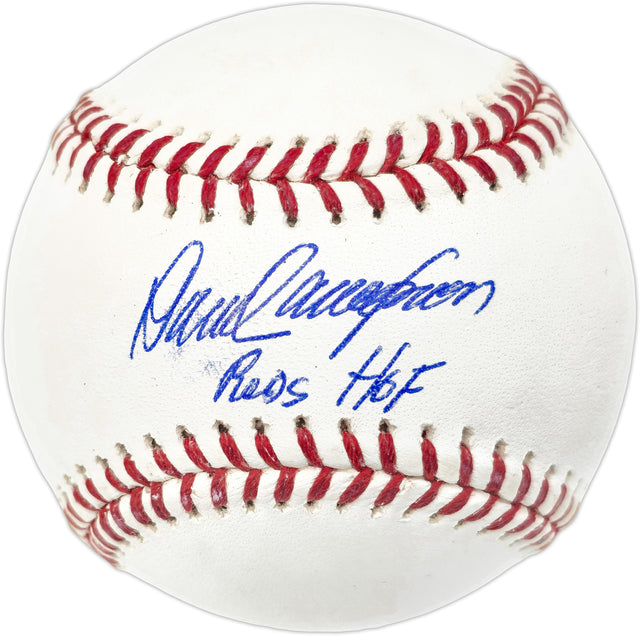 - Inscription: "Reds HOF" — honoring his Cincinnati Reds Hall of Fame status