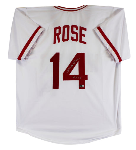 Reds Pete Rose "4256" Authentic Signed White Pro Style Jersey Autographed BAS 5