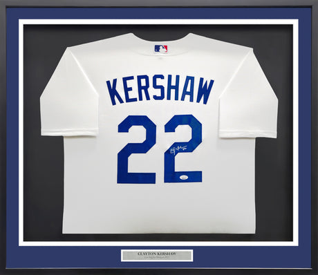 Los Angeles Dodgers Clayton Kershaw Autographed Framed White Nike Jersey JSA Stock #241400