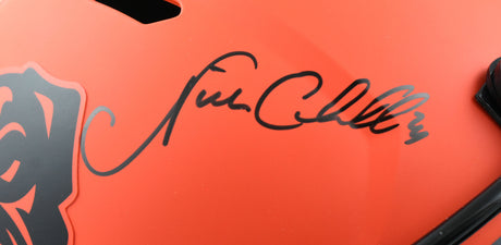 The Browns are the only NFL team that does not feature a logo on their helmet, instead using the solid orange shell as their signature look. This clean design actually makes signed helmets especially striking, as the autograph stands out prominently against the bright surface.