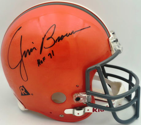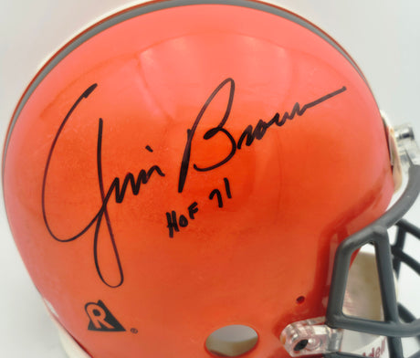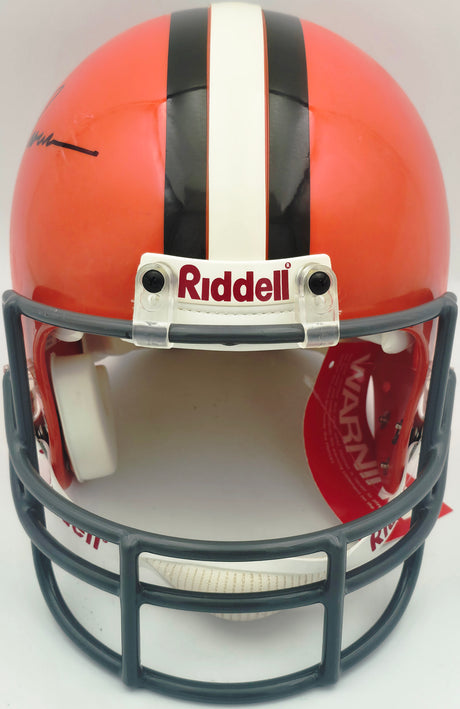 The Cleveland Browns helmet is one of the most recognizable in all of football — the only NFL team without a logo on its headgear, letting the iconic orange shell speak for itself. Our collection of over 140 authenticated Browns signed helmets includes full-size replicas and mini helmets autographed by legends like Jim Brown, Ozzie Newsome, and Bernie Kosar, as well as current standouts like Myles Garrett. Each helmet comes with a Certificate of Authenticity and tamper-evident hologram to guarantee the signature's legitimacy.