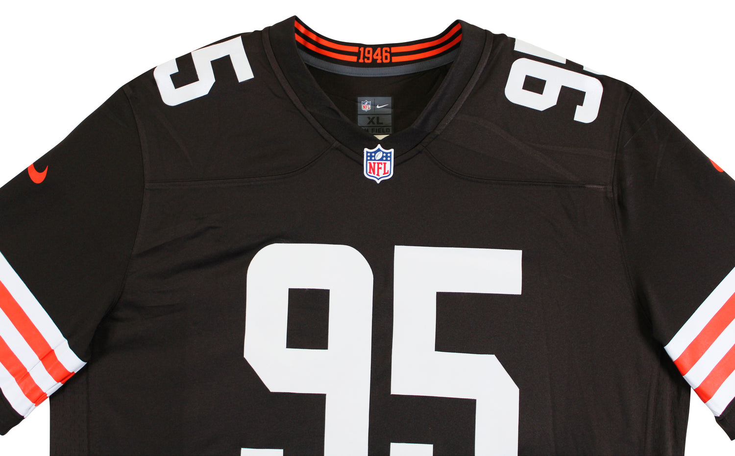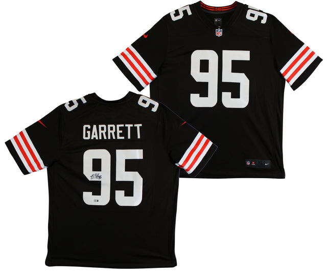 Celebrate one of the NFL's most dominant defensive stars with this Autographed Brown Nike Limited Jersey signed by Myles Garrett of the Cleveland Browns. A centerpiece for any football memorabilia collection, this jersey honors the fierce pass-rusher who’s become a cornerstone of the Browns defense since being selected as the #1 overall pick in the 2017 NFL Draft. Whether you're a die-hard Browns fan or a serious memorabilia collector, this piece delivers authenticity, value, and visual impact.