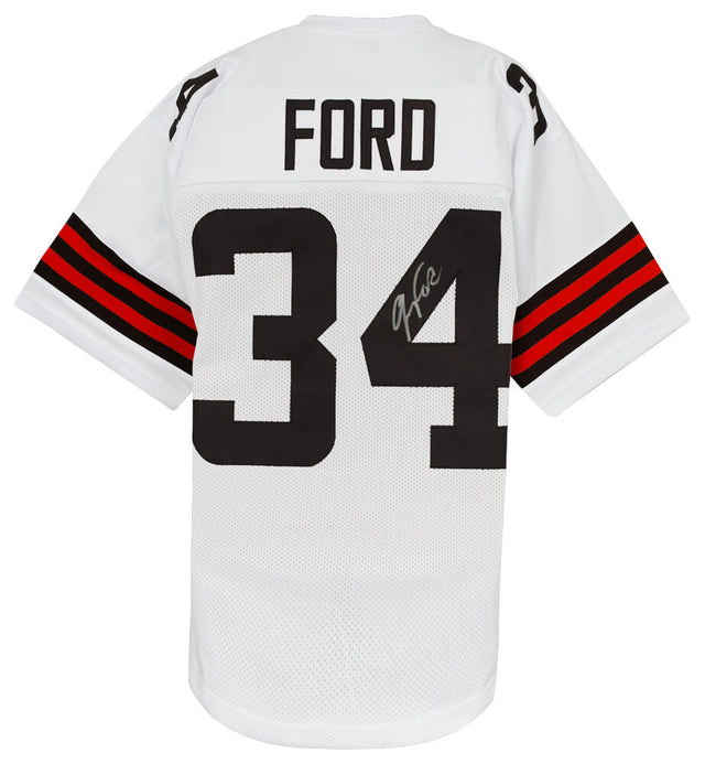 - Authentic signature from Cleveland Browns running back Jerome Ford, signed prominently on the jersey